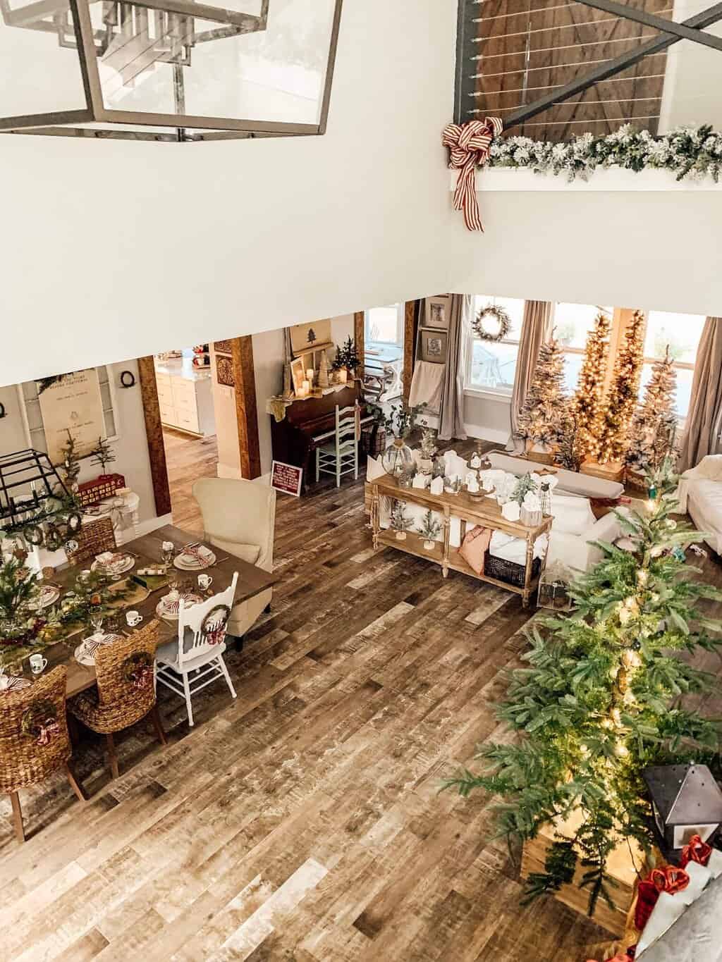 IMG_1865 A beautifully decorated Christmas living room featuring decorated trees, winter decor, and warm lighting for the holiday season.